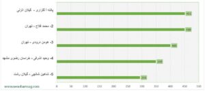 رده‌بندی پرنده‌نگرهای ایران در تعداد پرنده‌نگری ثبت‌شده (در سامانه جهانی ثبت پرندگان ایبرد)